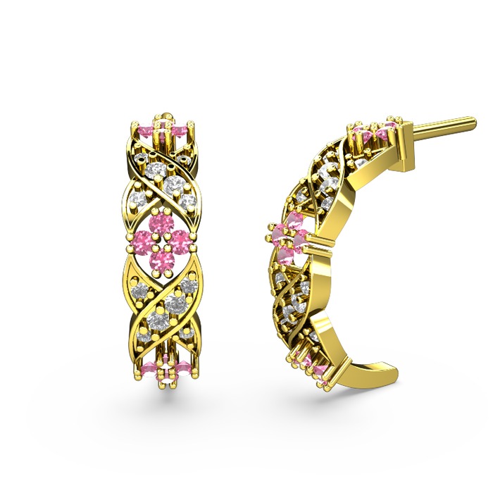 Pırlanta ve pembe kuvars 8 ayar altın küpe (0.54 karat)