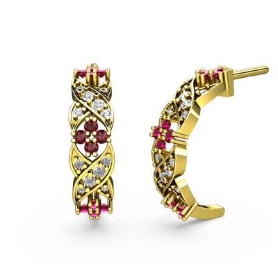 Pırlanta ve rodolit garnet 925 ayar altın kaplama gümüş küpe (0.54 karat)