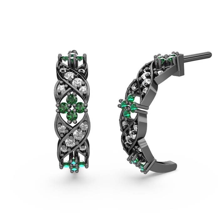 Pırlanta ve yeşil kuvars 925 ayar siyah rodyum kaplama gümüş küpe (0.54 karat)