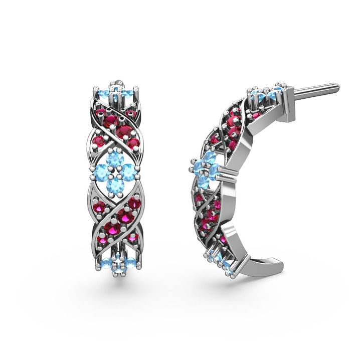 Rodolit garnet ve akuamarin 14 ayar beyaz altın küpe