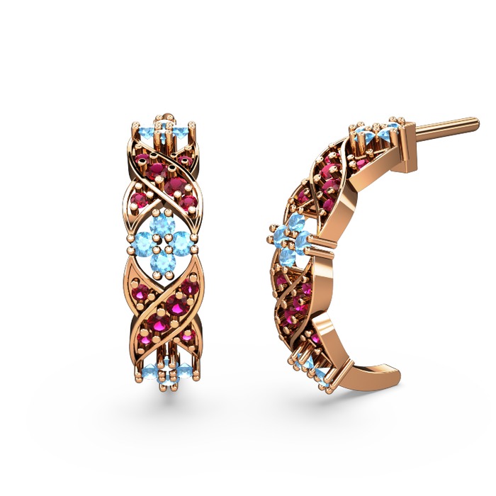 Rodolit garnet ve akuamarin 8 ayar rose altın küpe