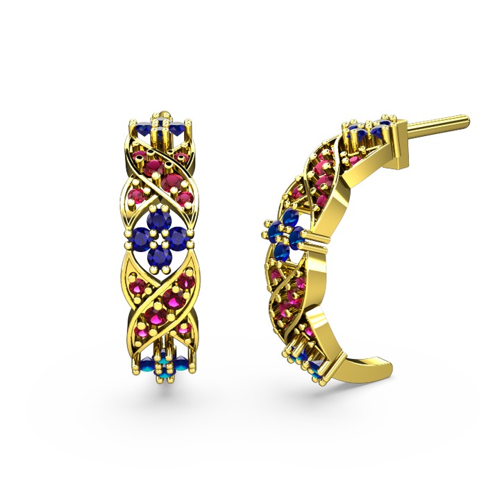 Rodolit garnet ve lab safir 14 ayar altın küpe