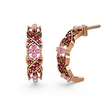 Rodolit garnet ve pembe kuvars 8 ayar rose altın küpe