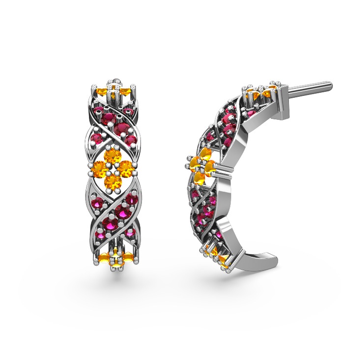 Rodolit garnet ve sitrin 8 ayar beyaz altın küpe