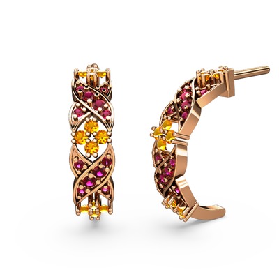 Rodolit garnet ve sitrin 8 ayar rose altın küpe