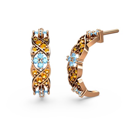 Sitrin ve akuamarin 925 ayar rose altın kaplama gümüş küpe
