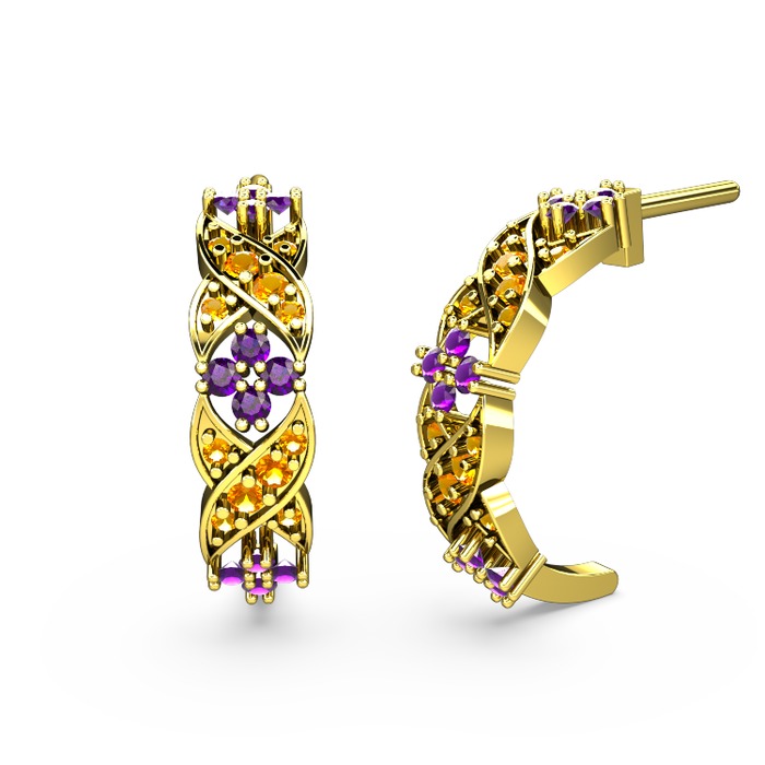 Sitrin ve ametist 925 ayar altın kaplama gümüş küpe
