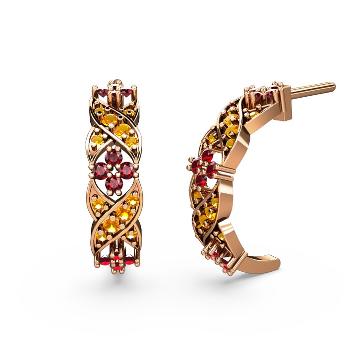 Sitrin ve garnet 925 ayar rose altın kaplama gümüş küpe