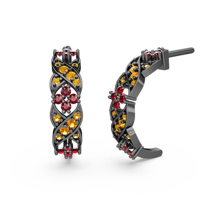 Sitrin ve garnet 925 ayar siyah rodyum kaplama gümüş küpe