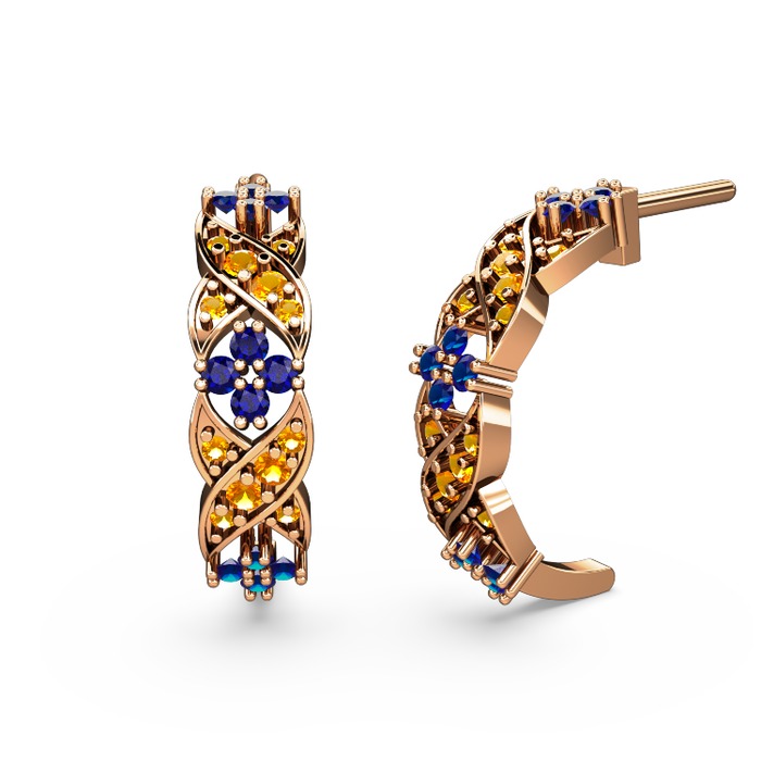 Sitrin ve lab safir 925 ayar rose altın kaplama gümüş küpe