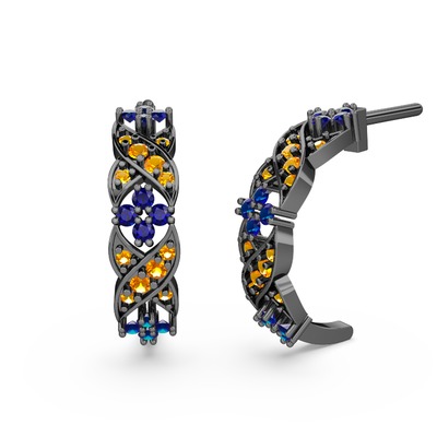 Sitrin ve lab safir 925 ayar siyah rodyum kaplama gümüş küpe