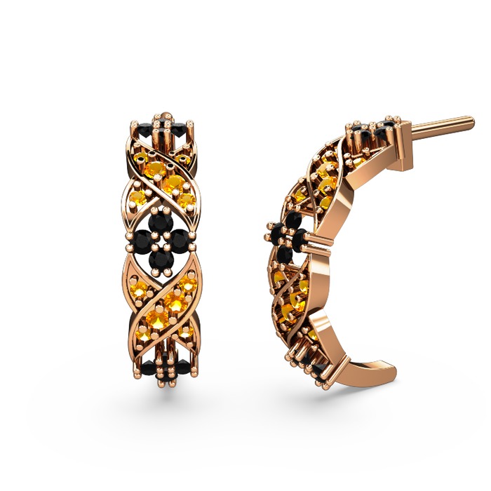Sitrin ve siyah zirkon 14 ayar rose altın küpe