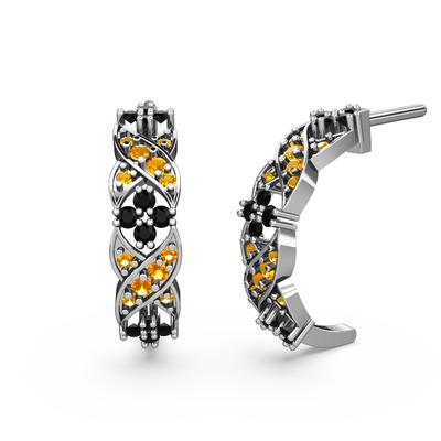 Sitrin ve siyah zirkon 18 ayar beyaz altın küpe