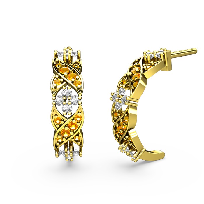 Sitrin ve swarovski 14 ayar altın küpe