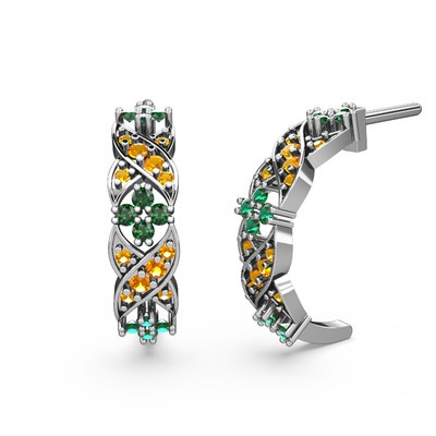 Sitrin ve yeşil kuvars 18 ayar beyaz altın küpe