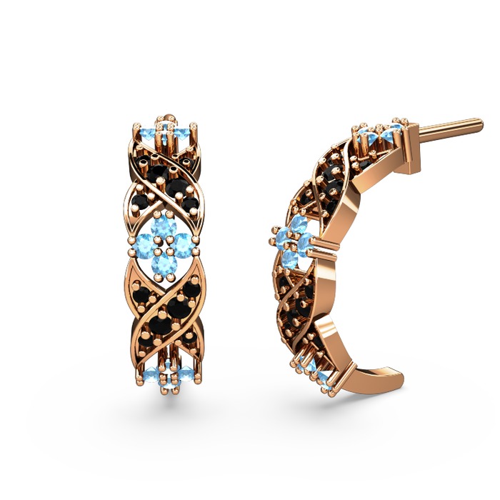 Siyah zirkon ve akuamarin 18 ayar rose altın küpe