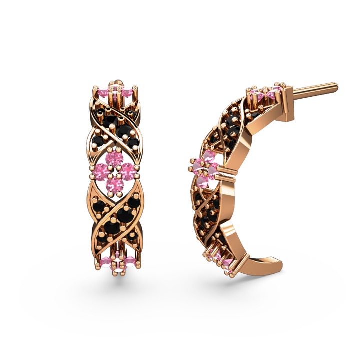 Siyah zirkon ve pembe kuvars 14 ayar rose altın küpe