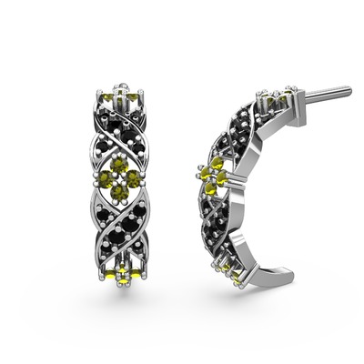 Siyah zirkon ve peridot 14 ayar beyaz altın küpe