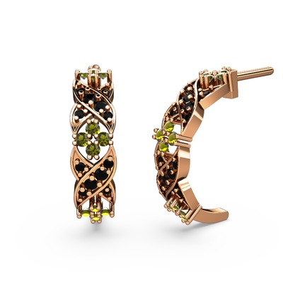 Siyah zirkon ve peridot 18 ayar rose altın küpe