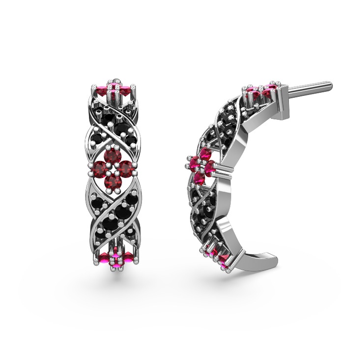Siyah zirkon ve rodolit garnet 18 ayar beyaz altın küpe