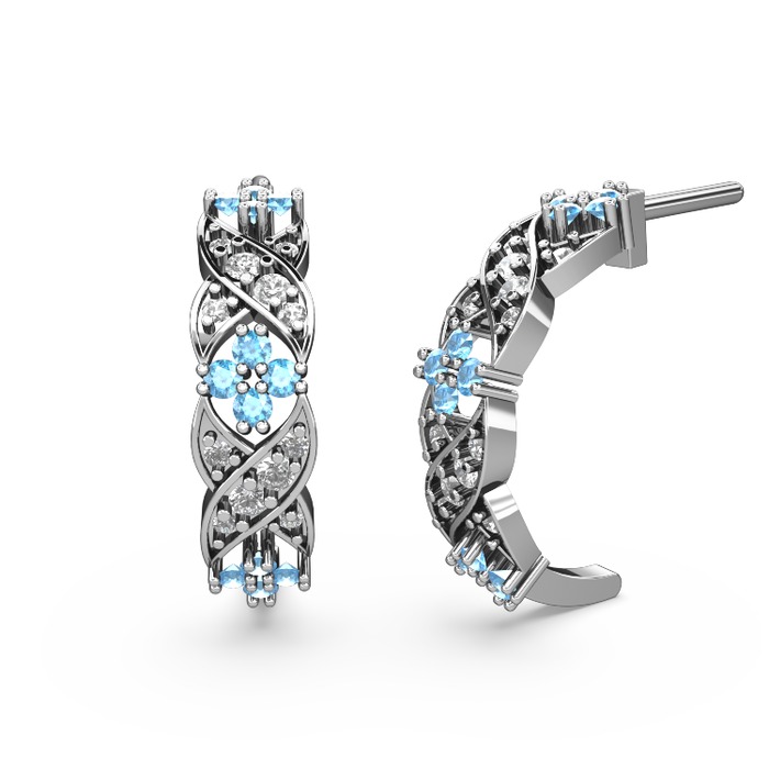 Swarovski ve akuamarin 18 ayar beyaz altın küpe