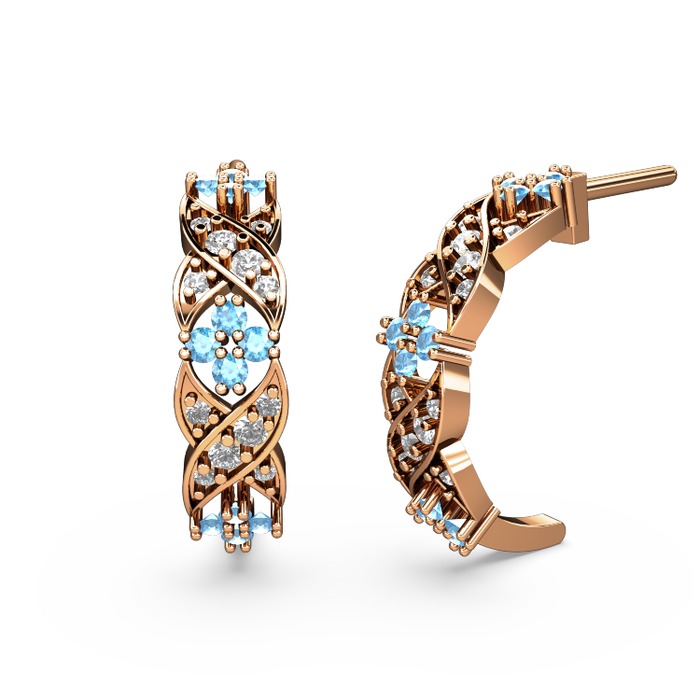 Swarovski ve akuamarin 18 ayar rose altın küpe