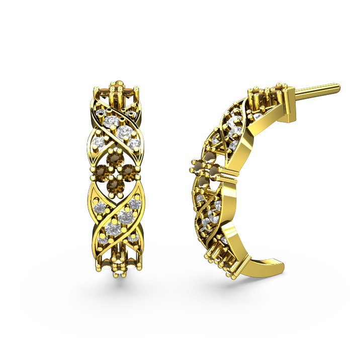 Swarovski ve dumanlı kuvars 925 ayar altın kaplama gümüş küpe