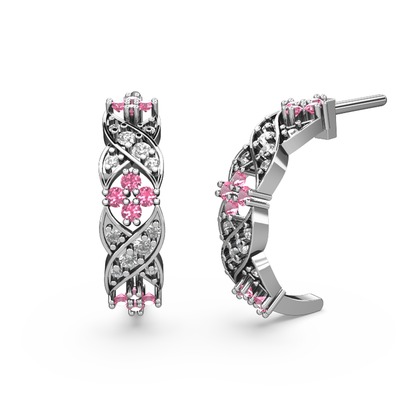 Swarovski ve pembe kuvars 8 ayar beyaz altın küpe