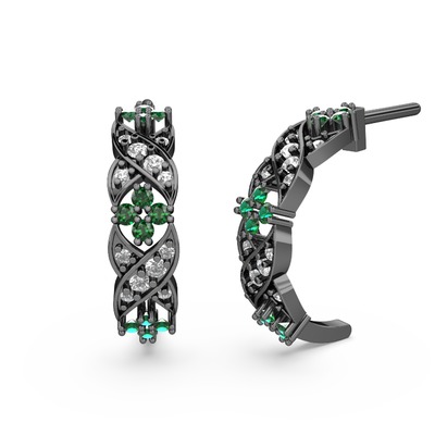 Swarovski ve yeşil kuvars 925 ayar siyah rodyum kaplama gümüş küpe