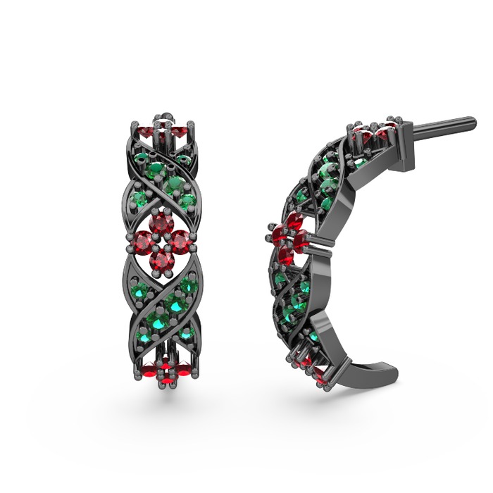 Yeşil kuvars ve garnet 925 ayar siyah rodyum kaplama gümüş küpe