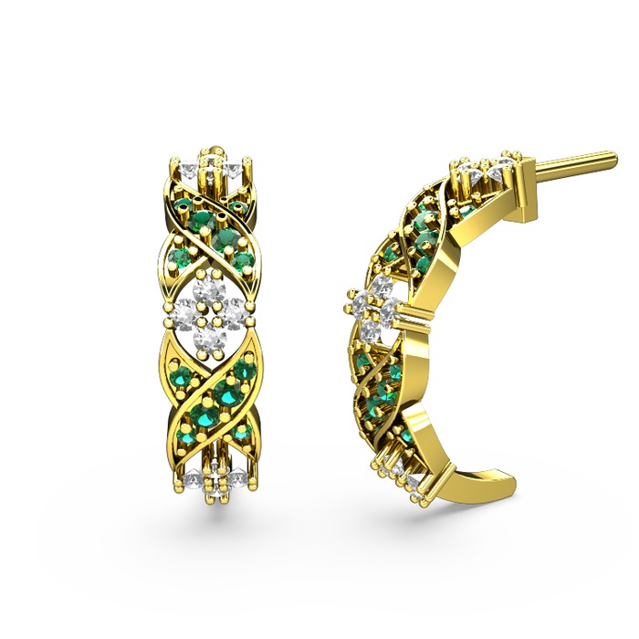 Yeşil kuvars ve pırlanta 14 ayar altın küpe (0.1408 karat)