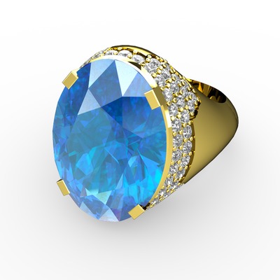 Akuamarin ve beyaz zirkon 14 ayar altın yüzük