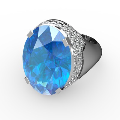 Akuamarin ve pırlanta 18 ayar beyaz altın yüzük (0.913 karat)