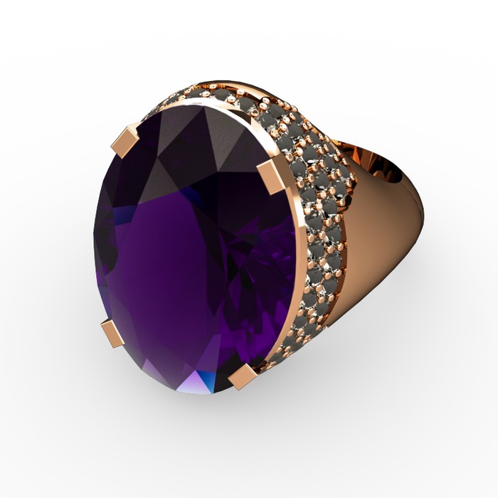 Ametist ve dumanlı kuvars 8 ayar rose altın yüzük