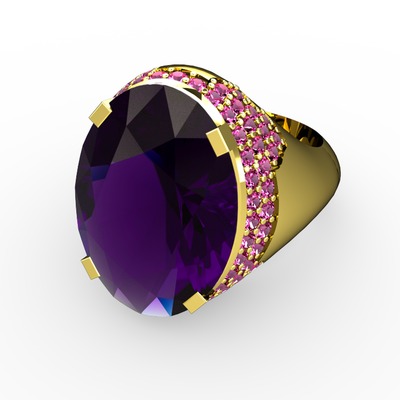 Ametist ve rodolit garnet 14 ayar altın yüzük