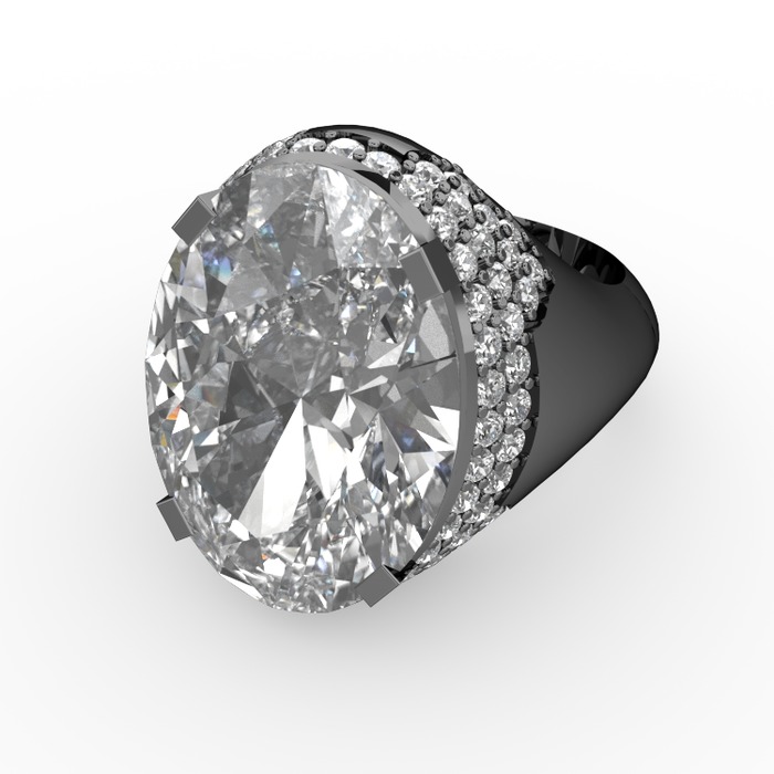 Beyaz zirkon ve pırlanta 925 ayar siyah rodyum kaplama gümüş yüzük (0.913 karat)