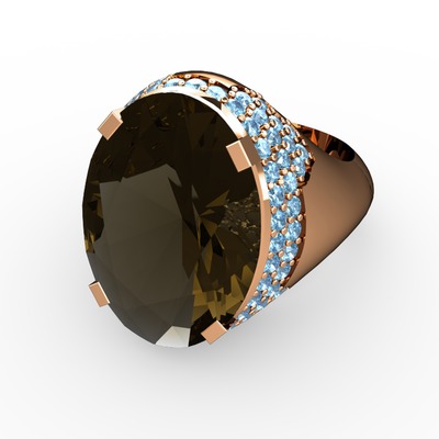 Dumanlı kuvars ve akuamarin 14 ayar rose altın yüzük