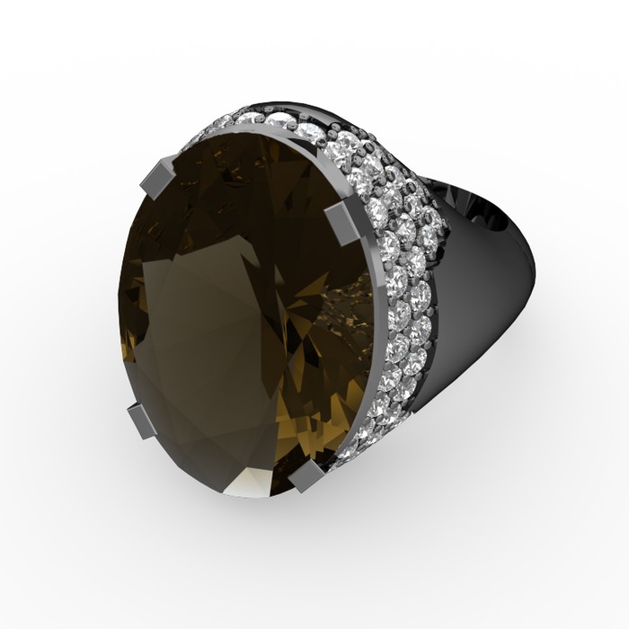 Dumanlı kuvars ve beyaz zirkon 925 ayar siyah rodyum kaplama gümüş yüzük