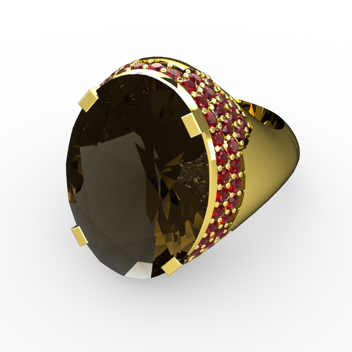 Dumanlı kuvars ve garnet 8 ayar altın yüzük
