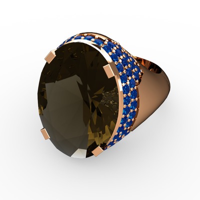 Dumanlı kuvars ve lab safir 18 ayar rose altın yüzük
