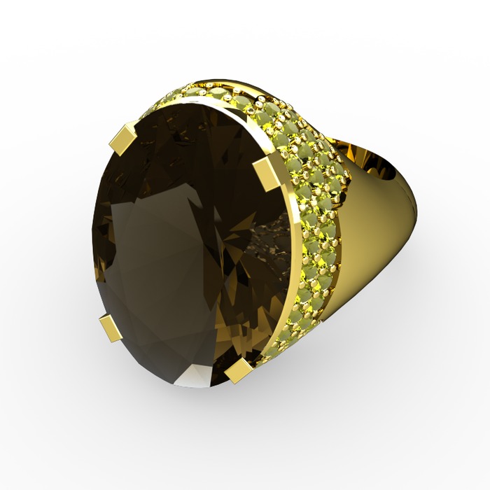 Dumanlı kuvars ve peridot 14 ayar altın yüzük