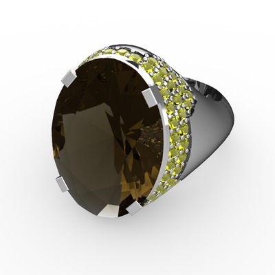 Dumanlı kuvars ve peridot 14 ayar beyaz altın yüzük