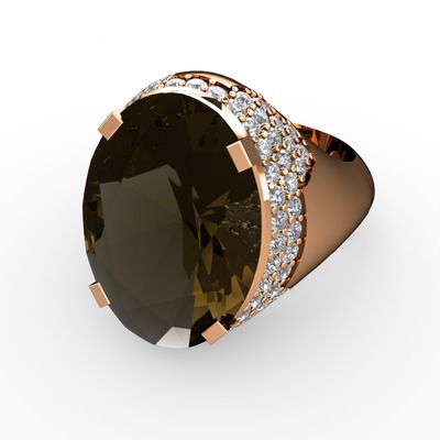Dumanlı kuvars ve pırlanta 14 ayar rose altın yüzük (0.913 karat)