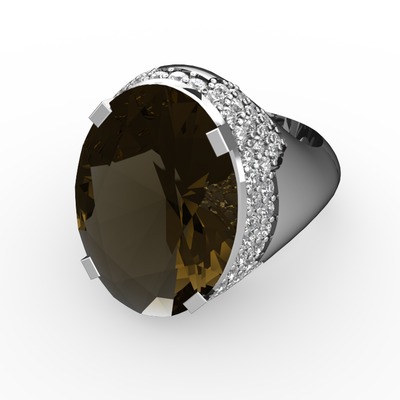 Dumanlı kuvars ve pırlanta 925 ayar gümüş yüzük (0.913 karat)