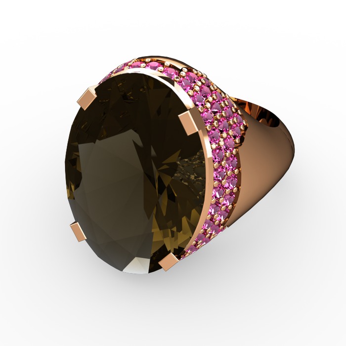 Dumanlı kuvars ve rodolit garnet 925 ayar rose altın kaplama gümüş yüzük