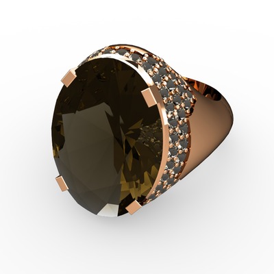 Dumanlı kuvars 925 ayar rose altın kaplama gümüş yüzük
