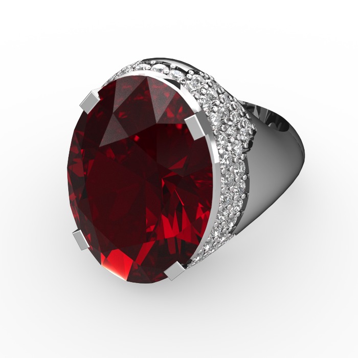 Garnet ve beyaz zirkon 14 ayar beyaz altın yüzük