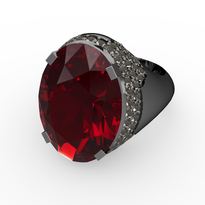Garnet ve dumanlı kuvars 925 ayar siyah rodyum kaplama gümüş yüzük