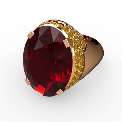 Garnet ve sitrin 14 ayar rose altın yüzük