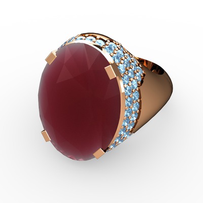Kök yakut ve akuamarin 925 ayar rose altın kaplama gümüş yüzük